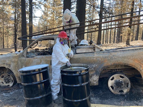 DTSC crews removing hazardous household waste from properties in Lassen County affected by the Beckwourth Fire