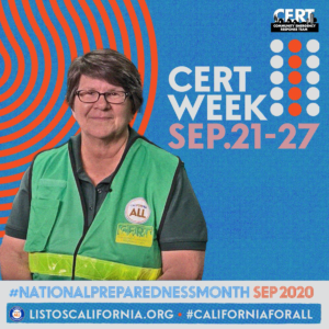 Sacramento, Calif. (Sep. 21, 2020) – The National CERT Association and Listos California announce today the inaugural CERT Week, from September 21-27, to recognize California’s 400+ CERT programs, and over 2,800 CERT programs nationwide, given their role to boost community preparedness and support during times of disaster response and recovery. CERT (Community Emergency Response Teams) programs across California, and the country, will host preparedness events, promote their local impact and recruit new disaster volunteers.