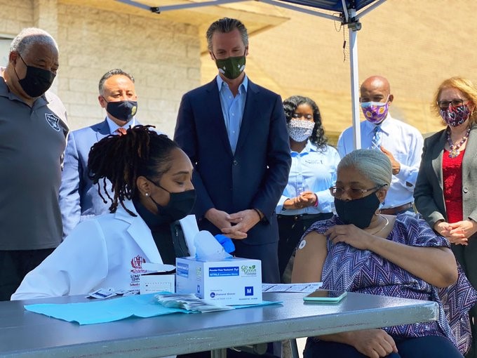 Governor Newsom visits pop-up clinic in San Bernardino at the Sixteenth Street Seventh-day Adventist Church this month