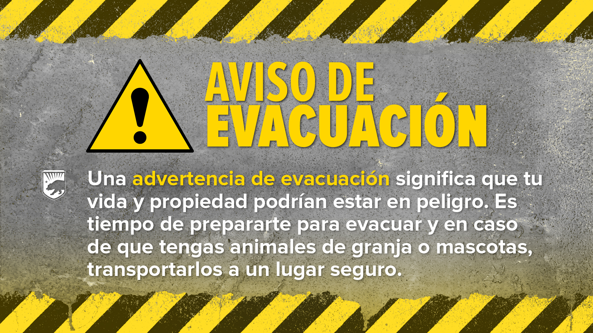 Una advertencia de evacuación, significa que hay una amenaza potencial a la vida y propiedad. Aunque no es una orden obligatoria, es importante poner atención y prepararte para desalojar.
