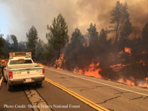 The fire started Sunday, June 24 in the vicinity of Clear Creek Road and American Road, west of Redding, and thus far has burned approximately 1,300 acres. Approximately 500 structures are being threatened as well as critical infrastructure within the area. Shasta County Sheriff’s Office has issued