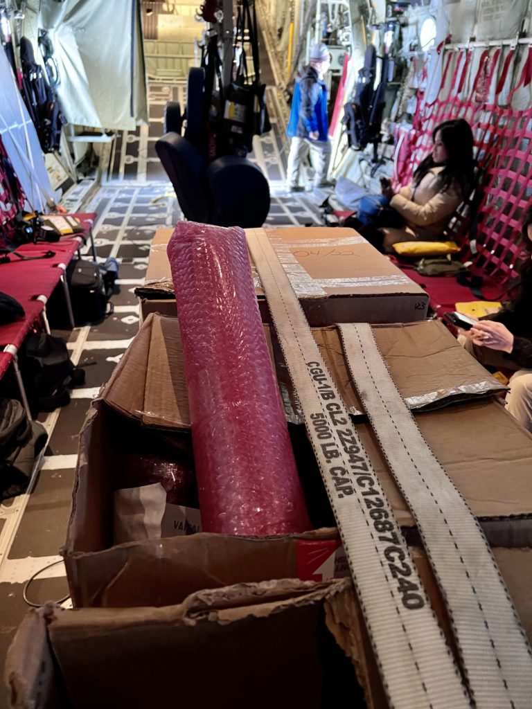 - Boxes of dropsondes, instruments used to collect weather data