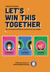 The Loteria card game concept, designed by artist Mark Beltran, is popular in Mexican culture. Ads will be available in Imperial County and billboards have already been installed throughout the region to promote the cards while directing the public to visit ListosCalifornia.org for more helpful information. Listos California’s partner, Catholic Charities Diocese of San Diego, will begin working with local partners across Imperial County to further outreach and promotion of the ads.