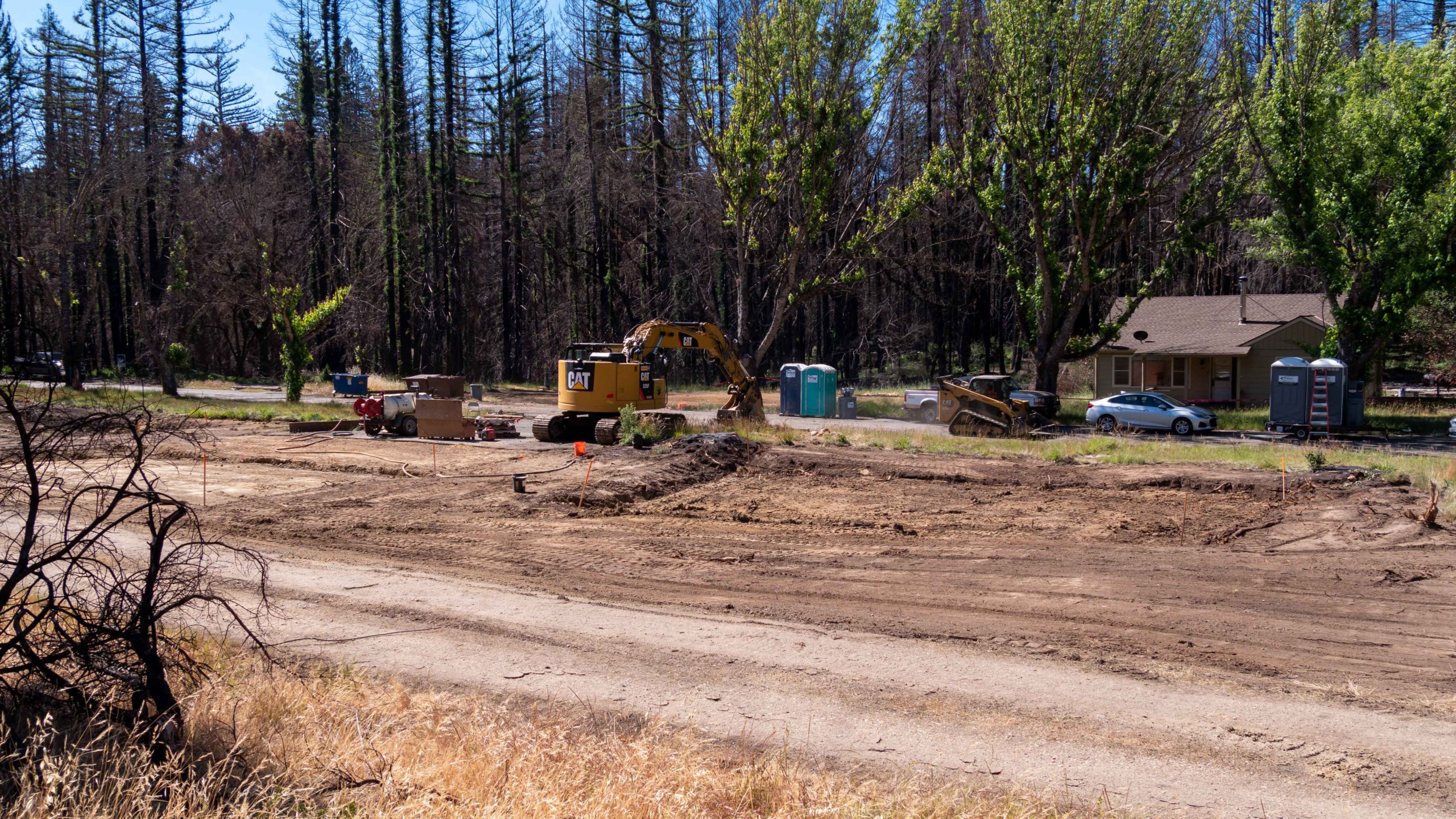 - New growth among burned remains of trees