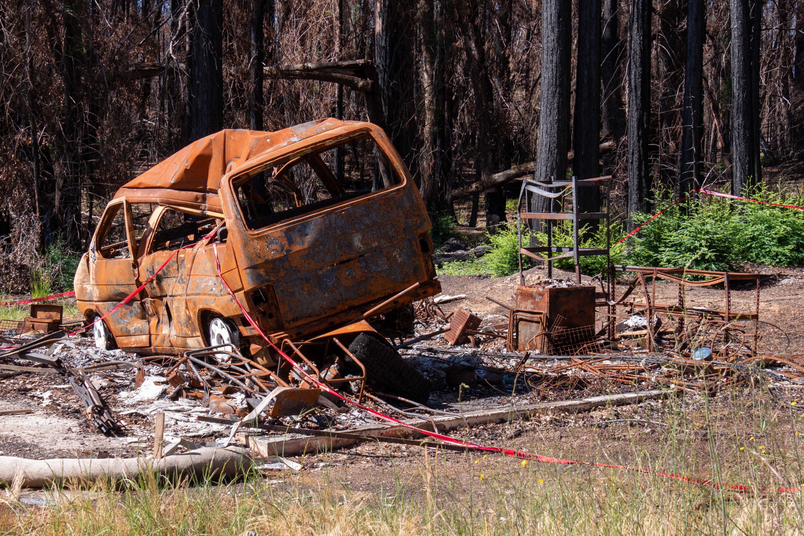 - Charred tree remains