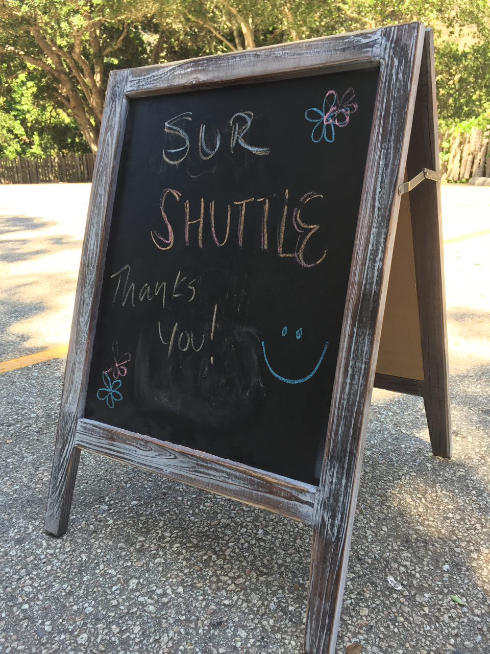 Shuttle Service Sign at Nepenthe Restaurant for travel around Pfeiffer Canyon Bridge Reconstruction Project, Big Sur