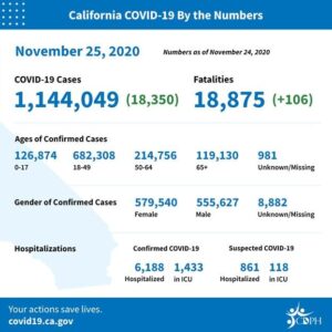 • As case numbers continue to rise in California, the total number of individuals who will have serious outcomes will also increase. There have been 18,875 COVID-19 deaths since the start of the pandemic.