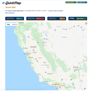 Know Before You Go. Unpredictable weather also means road conditions and routes are subject to change as quickly as the weather does. QuickMap is a reliable source from Caltrans with the latest conditions such as closures, detours and more. Drivers are encouraged to download the free QuickMap mobile app to have road conditions in the palm of their hands. Road conditions are also available online at quickmap.dot.ca.gov.