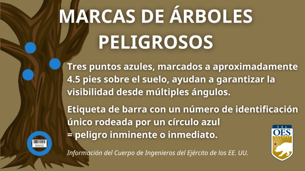 - Peligro de seguridad: árboles que representan un peligro inmediato para las cuadrillas durante la remoción de escombros. Si un árbol corre el riesgo de caerse o dañar el equipo, debe eliminarse para proteger a los trabajadores.